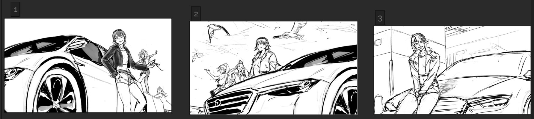 イラスト制作に際し、設定の確認やイメージを固めるために制作されたイラストです。