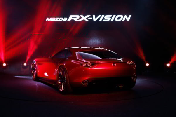 マツダが「第44回東京モーターショー」で世界初公開した、ロータリーエンジンを搭載したスポーツカーのコンセプトモデル「Mazda RX-VISION(マツダ・アールエックス・ビジョン)」。