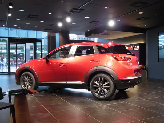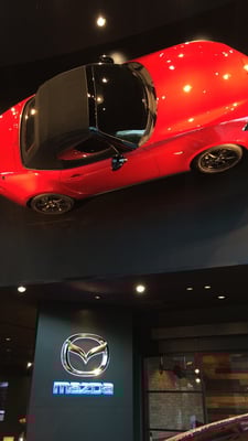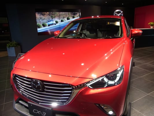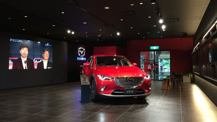 ショールーム奥に展示されているCX-3が存在感を放ち、外からも見えた入り口近くの「壁面」に展示されているロードスターもインパクトがあります。