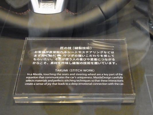 ショールーム奥には、壁一面を使った「今のマツダデザイン」に関する展示がありました。