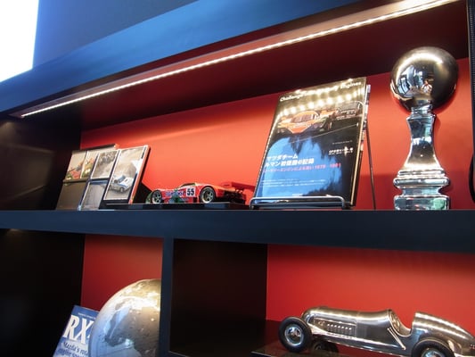 ショールーム手前には「これまでのマツダ」を知ることができる本や写真、オブジェ・モデルカーが展示